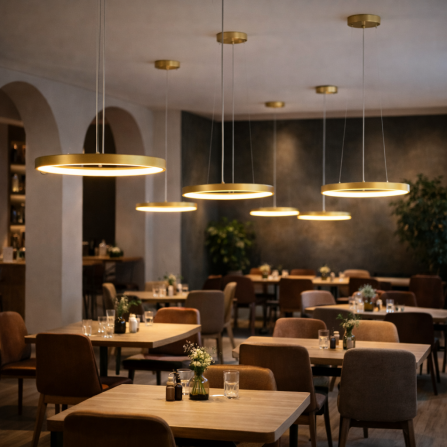 Solea 62 LED luster snage 50W u zlatnoj boji predstavlja spoj snažnog osvetljenja i dekorativnog dizajna. Opremljen je daljinskim upravljačem za jednostavno podešavanje temperature svetla između 3000K i 4000K.