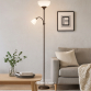 Podna lampa u braon boji, sa dve sijalice, kao dva izvora svetlosti.