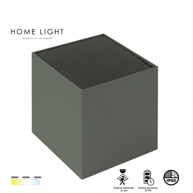 Solarna lampa TAYO 6W 3CCT 600lm sive boje nudi pouzdano i energetski štedljivo osvetljenje za dvorišta, prilaze i terase, sa automatskim radom noću. Opremljena je senzorom pokreta sa uglom detekcije od 180° i dometom 3–6 metara, što je čini idealnim rešenjem za sigurnu i funkcionalnu spoljašnju rasvetu.