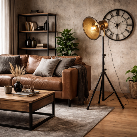 Stona lampa atraktivnog retro dizajna, boje mesinga, sa jednim sijaličnim grlom tip E27.