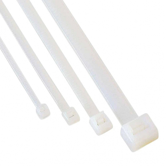 Bela plastična vezica, dimenzija 4.8 x 500 mm ,namenjena za grupisanje i pričvršćivanje različitih predmeta u snopove.
