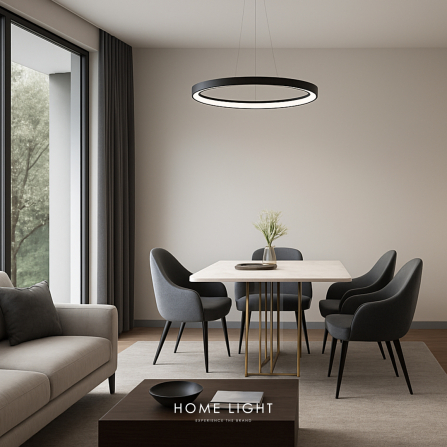 Visilica crne boje, elegantnog dizajna i izgleda, snage 38W. Svetlo prirodno bele boje svetla(4000K) pruža iz svog kružnog oblika celim obimom, dajući tako kvalitetno osvetljenje, bilo da želite da je postavite u vašem domu ili poslovnom prostoru.